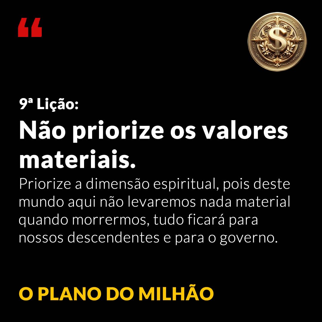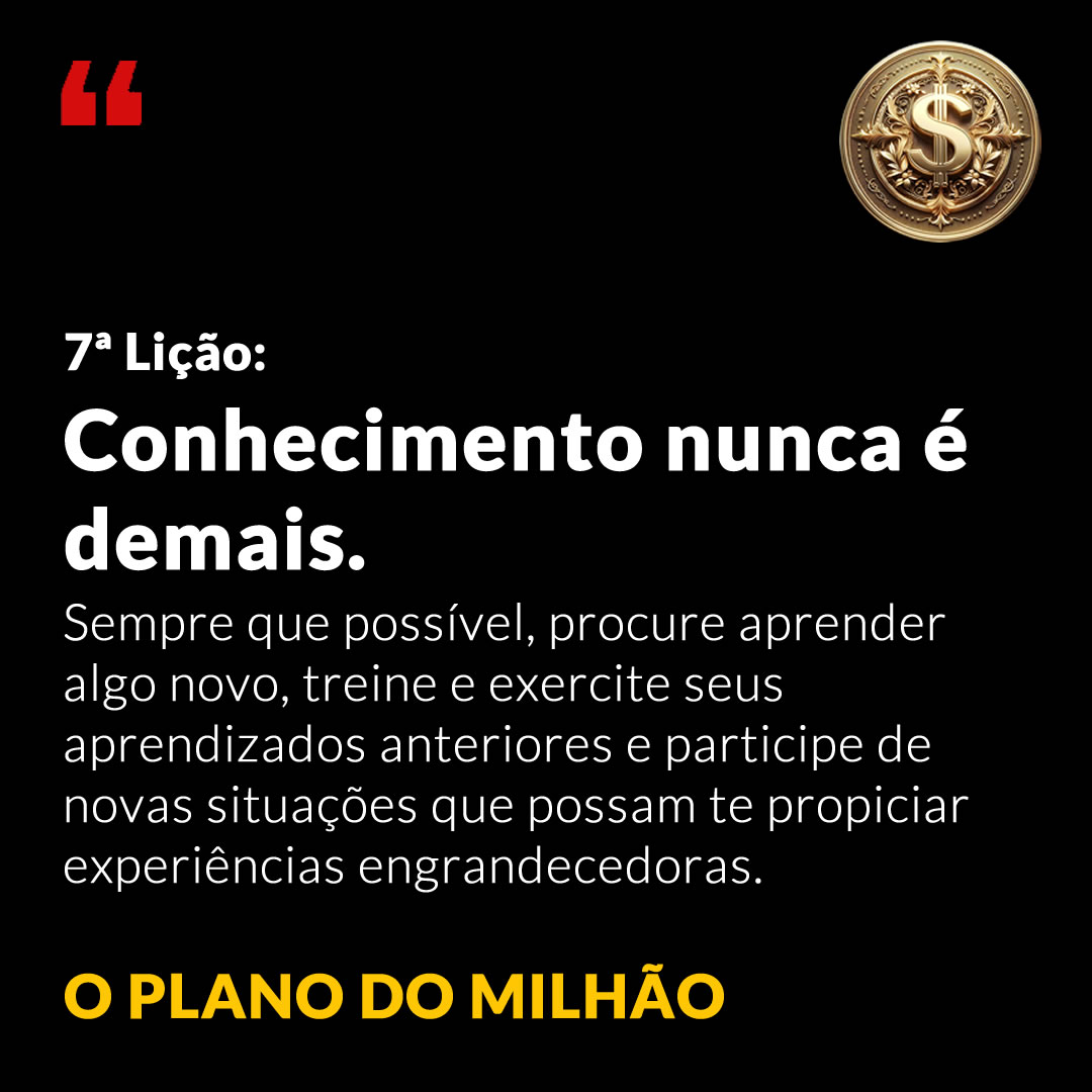 Estas são algumas lições que podem ser extraídas do texto do Plano do Milhão